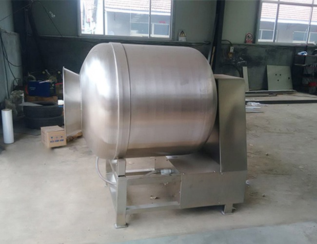 真空滚揉机是在真空状态下,利用物理冲击原理,让肉块或肉馅在滚筒内上下翻动,相互撞击、摔打,从而达到按摩、腌渍作用。腌渍液被肉充分地吸收,增强肉的结合力及弹性,提高产品的口感及断面效果;可以增强保水性,增加出品率;可以改善产品的内部结构。新一代的全自动真空滚揉机除具有真空滚揉机的特点外,还具有电脑控制与变频技术的功能。更新增加了遥控操作系统,是机器使用更安全,更方便,更加节能。整机采用不锈钢制造,结构紧凑,滚筒两端均采用旋压式封帽结构,很大的增加滚筒内的摔打空间,使滚揉产品的效果均匀,噪音小,性能可靠,操作简便,使用效率更高。