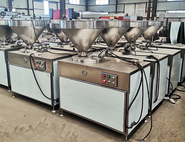 科力液压灌肠机可以用于各种馅料灌制肠类,可加工鸡肉肠,红肠,腊肠,香肠,蔬菜肠,粉肠,大众肠,烤肠,血肠,糯米肠等各种肠类。灌制速度快,效果好。该机上部设有贮料斗、碟形阀,可实现不掀盖连续灌制,提高了工作效率。自动化程度高,该设备采用不锈钢材质,坚固耐用易清洗。操作简单方便,出料速度快,科力液压灌肠机灌制的香肠肠体均匀,即可灌肉块状的肠,也可灌糜状的肠,灵活方便,加料自如,效率高,并有很好的连续生产能力,清洗方便,适合各种类型的生产企业。